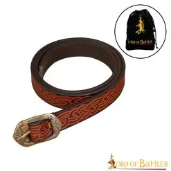 Looking for a belt that can fit your modern-day outfit and your LARP or Pirate Cosplay costumes at the same time? This well-designed belt with richly embossed CELTIC KNOTWORK is exactly the leathercraft you should get! And effortlessly invigorating its look, is its buckle that makes it truly irresistible.