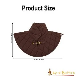 We are not talking about synthetic or ultra-slim padded arming collars available in the market. We are talking about ROBUST CANVAS and REAL PADDING, which makes a difference when you’re looking for an authentic arming collar! The pair of straps, one on each side, allow you to directly attach the pauldrons to the gorget. Its width from one end of the collar to another is 49 cm, with a total height of approx. 33 cm.