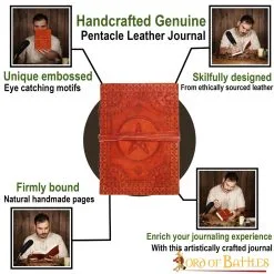 Since we persevere in authenticity, this journal is handmade from genuine materials! It is handcrafted from ETHICALLY SOURCED BUFF LEATHER. It has 100 natural handmade papers, strongly bound together using sturdy fabric strings. Its dimensions are approx. (7 X 5) inches.