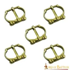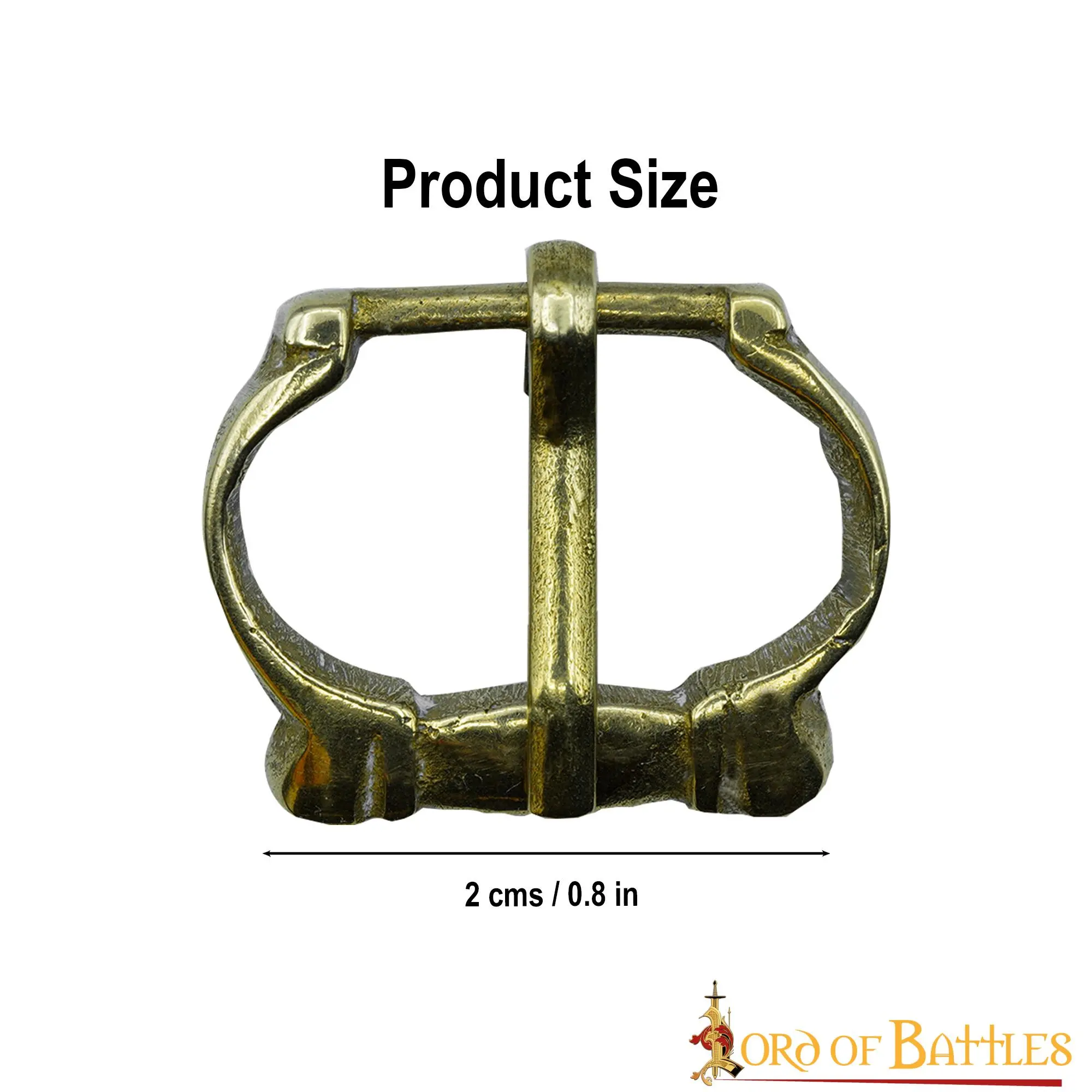 This small brass buckle is just the right fit for your helmet straps or any armour fastening belt. It has been meticulously designed from PURE SOLID BRASS, making it a sumptuous medieval accessory; it measures approx. 2 cm in length and can fit a 1 cm wide strap.