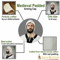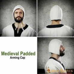 A padded arming cap is an essential piece of medieval clothing that works as an excellent shock-absorbing layer right under your sturdy helm! So if you are a knight or even a soldier from the infantry, this arming cap can be a great form of protection.