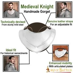 Should you want to portray a simple soldier, archer or billman, this nice simple gorget will help you accessorize your outfit and reinforce your gambeson or your brigandine against enemy attacks.