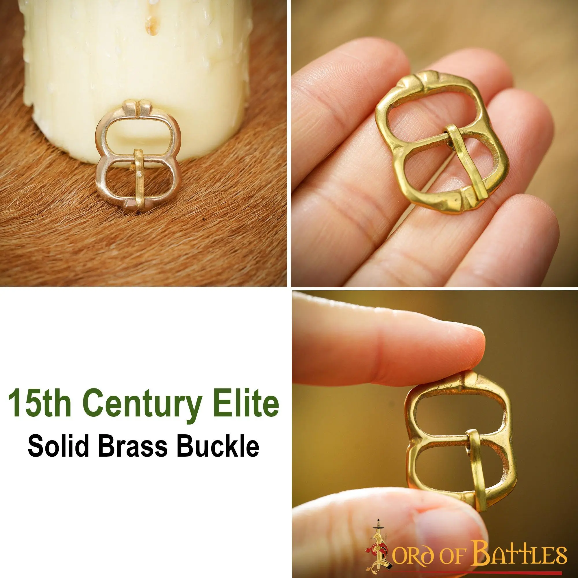 Want to fasten a belt, a helmet strap, even leather straps on your favourite padded gambeson! We have already made it work for you, with our 15th-century brass buckle! These buckles have been ideal for fastening straps on armour, gambesons, and shoes throughout history and befitting to do so even today.