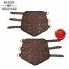 These bracers are artistically HANDCRAFTED from robust GENUINE BUFF LEATHER. For an adjustable fit, a pair of genuine leather straps with pure brass buckles is provided. Each bracer has a length of approx. 17 cm, upper width of approx. 31 cm, and lower width of approx. 20 cm.
