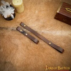This pair of sword-hanging belts is well crafted by our skilled artisans using none other than GENUINE BUFF LEATHER. The total length of the long belt is approx. 31.75 cm and that of its shorter counterpart is 16.51 cm. NOTE: Since this is authentic leather, avoid contact with moisture; clean it regularly with linen (or any soft cloth); if the stain pertains, damp cloth and some lather out of mild soap will do the needful.