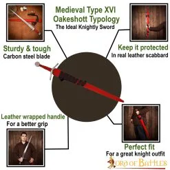 A perfect add-on to your décor or a knightly outfit, this historically accurate Type XVI sword is truly a piece of art! This sword will undoubtedly complement your medieval setting at its best!