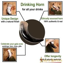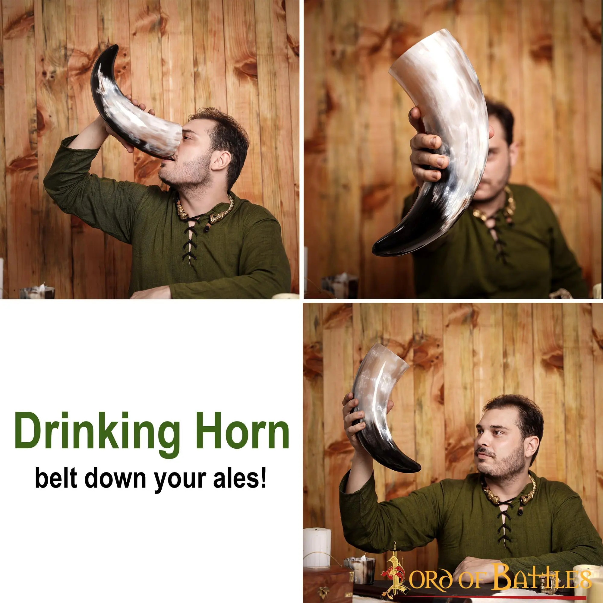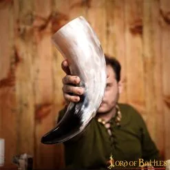 What is better than our large medieval drinking horn brimmed with your favourite ale amidst your kin to enjoy? Persevering in the true medieval essence, this horn has been handmade from an authentic, REAL OX HORN.