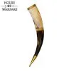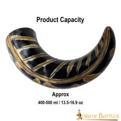 This drinking horn is handmade from a genuine Ox horn. The total capacity of the horn is approx. 400-500 ml (of a liquid with up to 20% alcohol content). Please avoid dishwashers and hot beverages. Before use, make sure to wash under running water. For a longer life, treat with bees’ wax after each use. Please note this is a natural product that decays with time and, hence cracks may come.