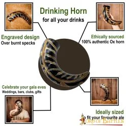 Be it glugging ales with your friends or simply adorning your décor, our drinking horn with engraved patterns over charred specks, is just the right fit! Its unique design and visually appealing rugged appearance make it great for gifting it to your loved ones as well! Since it comes with a bag, it can effortlessly be taken care of for years to come!