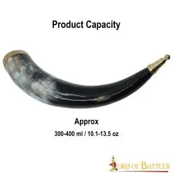 This drinking horn is handmade from a genuine Ox horn. The total capacity of the horn is approx. 300-400 ml (of a liquid with up to 20% alcohol content). Please avoid dishwashers and hot beverages. Before use, make sure to wash under running water. For a longer life, treat with bees’ wax after each use. Please note this is a natural product that decays with time and, hence cracks may come.