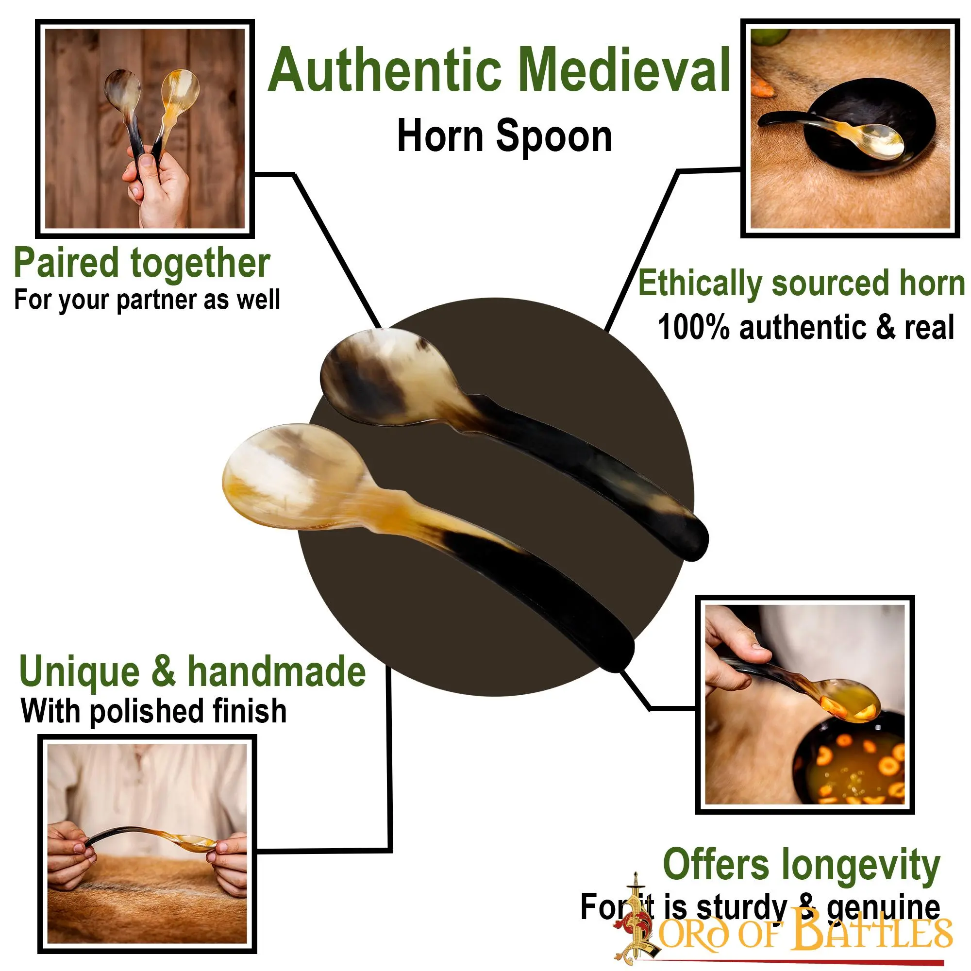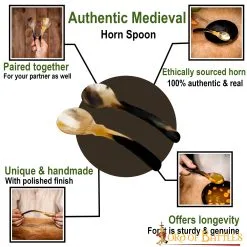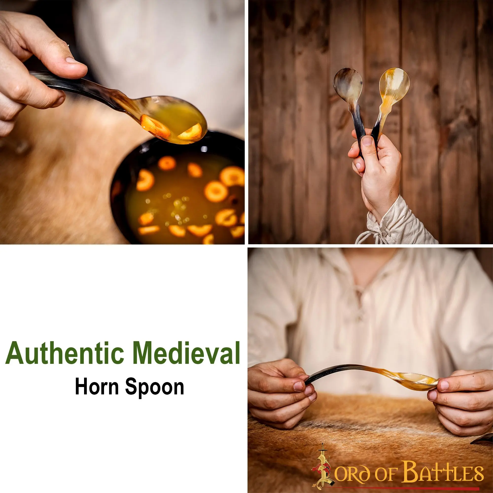A bowl brimming with scrumptious Pottage Stew is just a spoon-fill away from you. But what will take your devouring experience to the fullest? Our Medieval Horn Spoon, handmade from genuine Bovine horn!