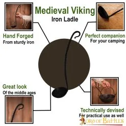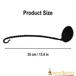 Serve the well-cooked pottage stew to the starving infantry with this rustic ladle, equipped with a long twisted handle. Its well-designed construction allows hassle-free cooking in fire-top cookware.