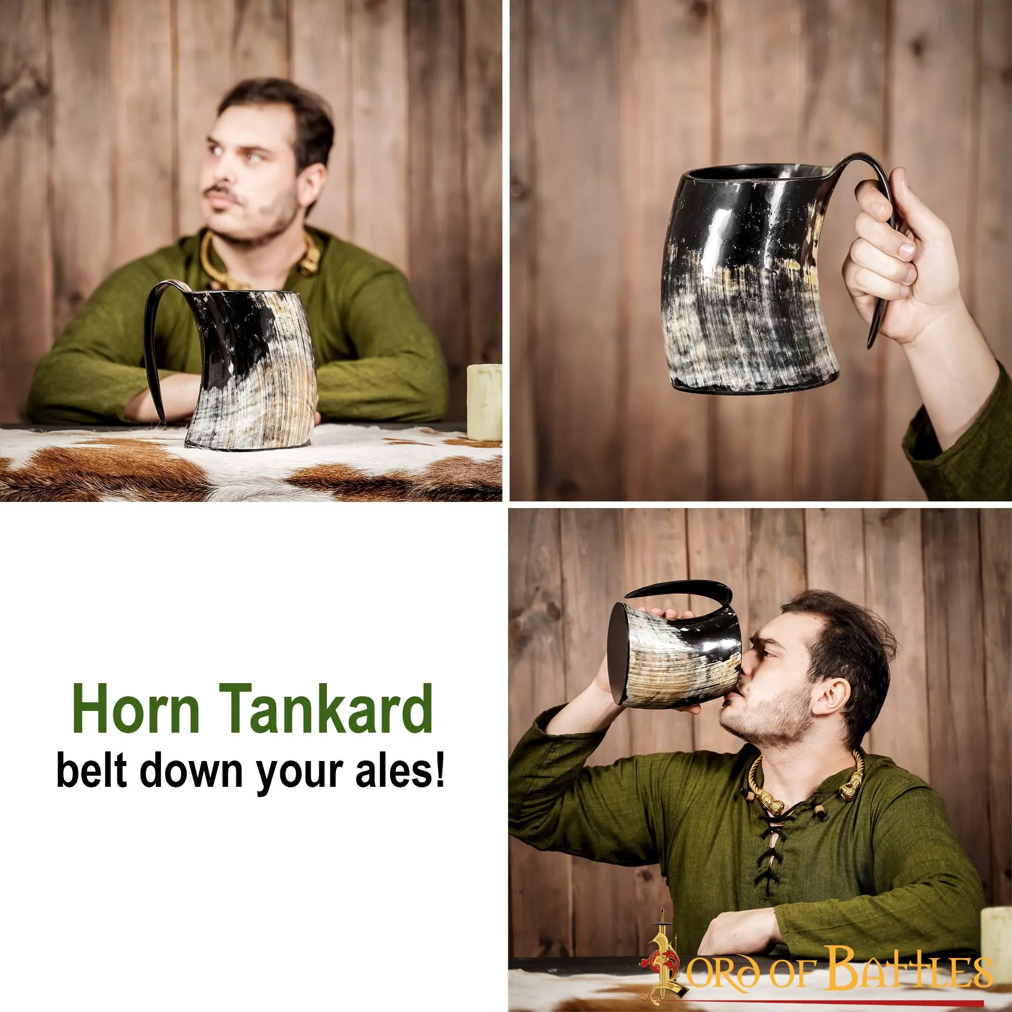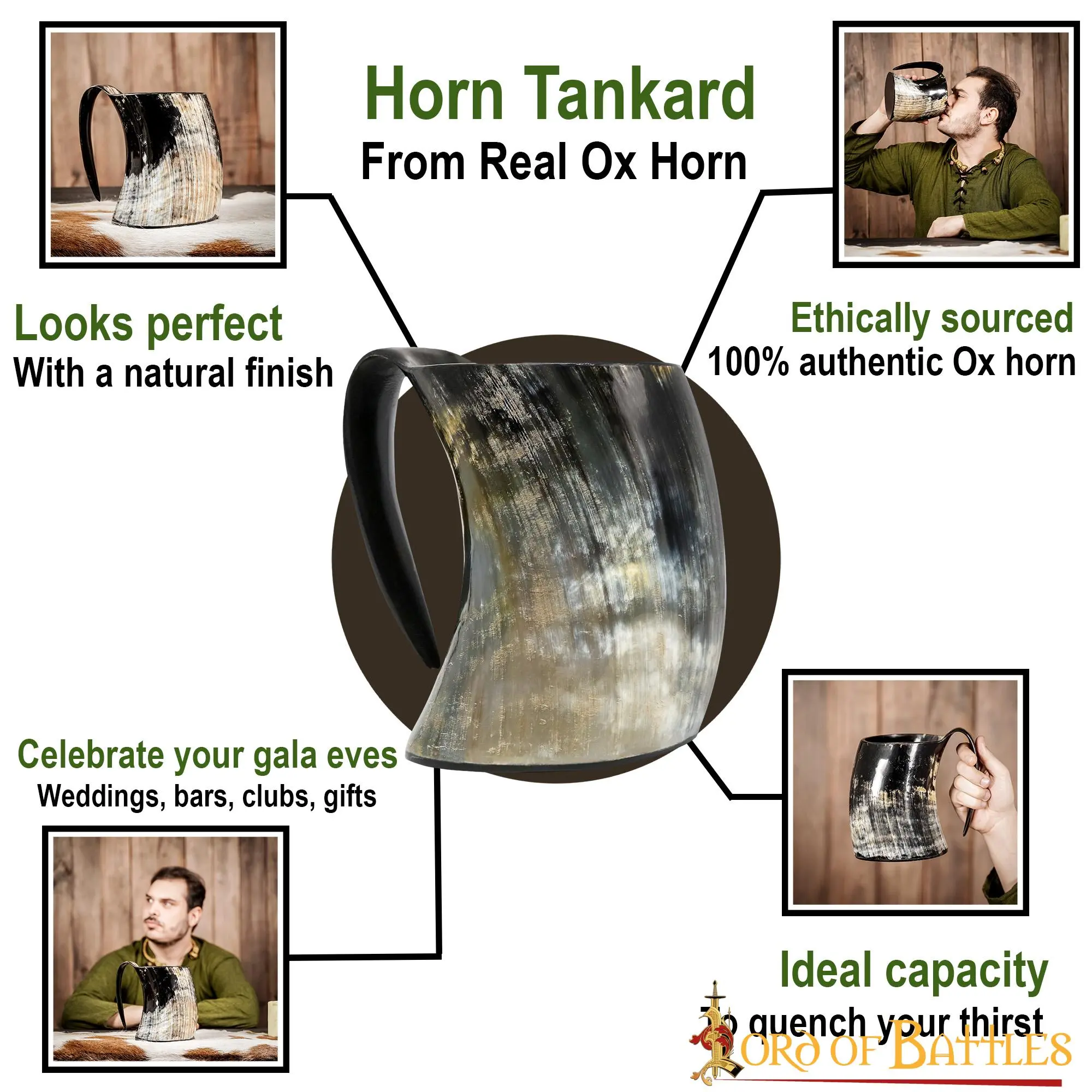 Be it your medieval décor, or raising a toast at the Vikinglag, our drinking horn tankard is the best fit for all. It is handmade from ethically sourced Ox horn for a historical drinking experience. We care for your horn products as much as you do, and just for that, it comes in a stout cotton canvas bag.