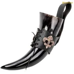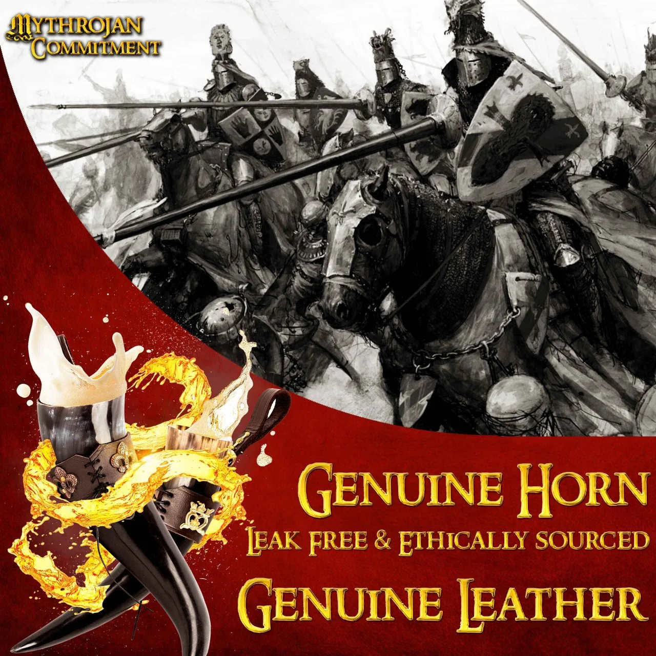 Mythrojan THE KNIGHT OF REALM Viking Drinking Horn With Black Leather Holder Authentic Medieval Inspired Viking Wine/Mead Mug – Polished Finish