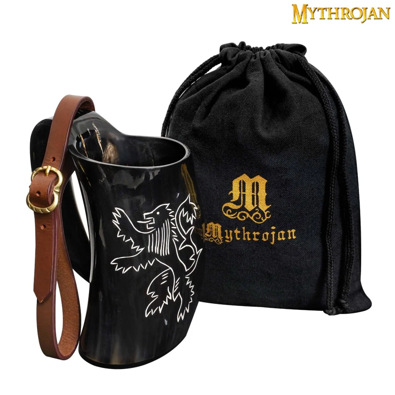 Mythrojan Viking Drinking Tankard With Medieval Buckle Leather Strap Wine Beer Mead Mug 600ml – Polished Finish