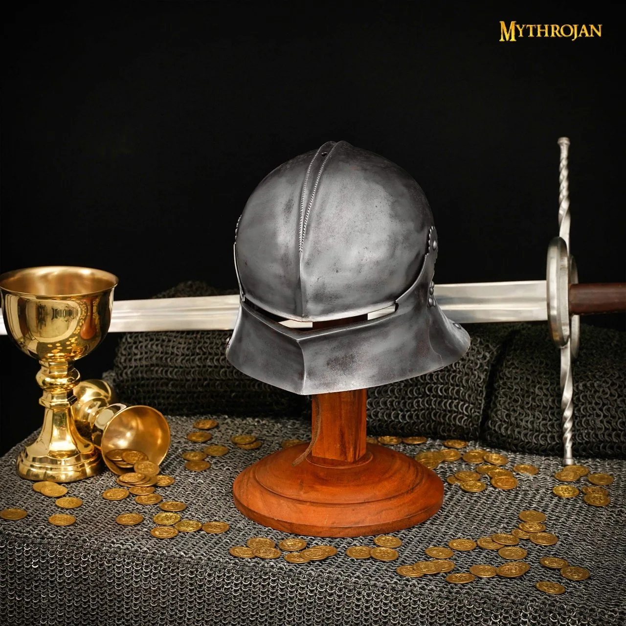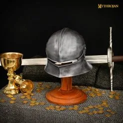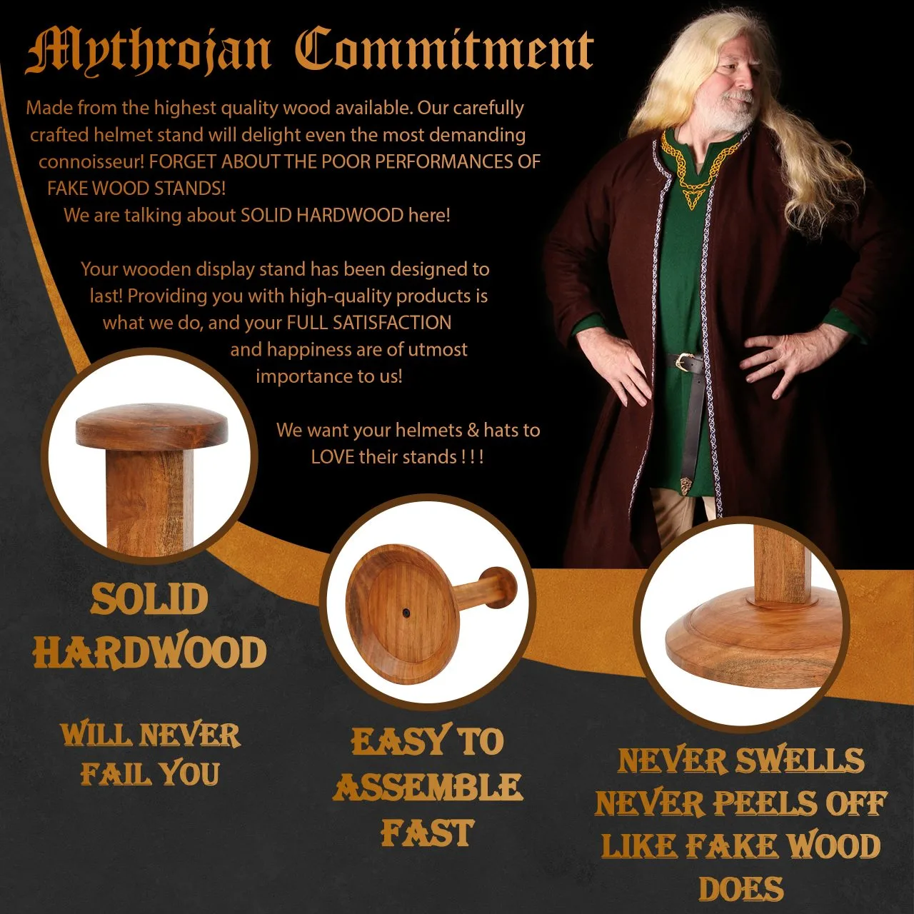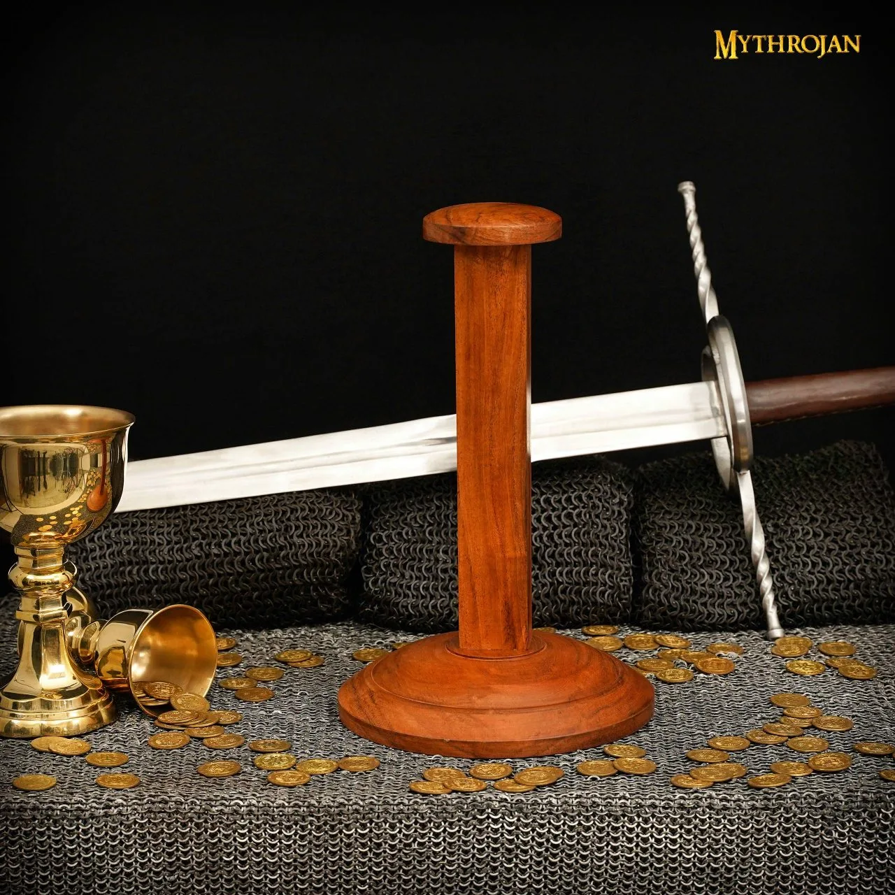 Mythrojan Wooden Helmet Stand Solid Medieval Roman Viking Helmet Display Stand Mask Display Templar Spartan Cosplay LARP Knight Stand Brown