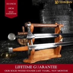 - 17.5” WIDE: PERFECT SIZE TO SHOW ALL YOUR SWORDS IN THEIR BEST LIGHT. Is there anything better than welcoming good friends for a festive banquet or a memorable wedding and sharing a nice beer surrounded by your favorite swords proudly displayed on their elegant wooden stands, like distant echoes of a long gone past?