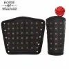 It is HANDCRAFTED from GENUINE SUEDE LEATHER and is lined with a TOP GRAIN LEATHER STRIP, riveted to the pouch using solid brass rivets. When it is empty, its dimensions are approx. (13 X 15) cm. NOTE: Since this is authentic buff leather, make sure to keep it away from moisture; clean it regularly with linen (or any soft cloth); if the stain pertains, damp cloth and some lather out of mild soap will do the needful.