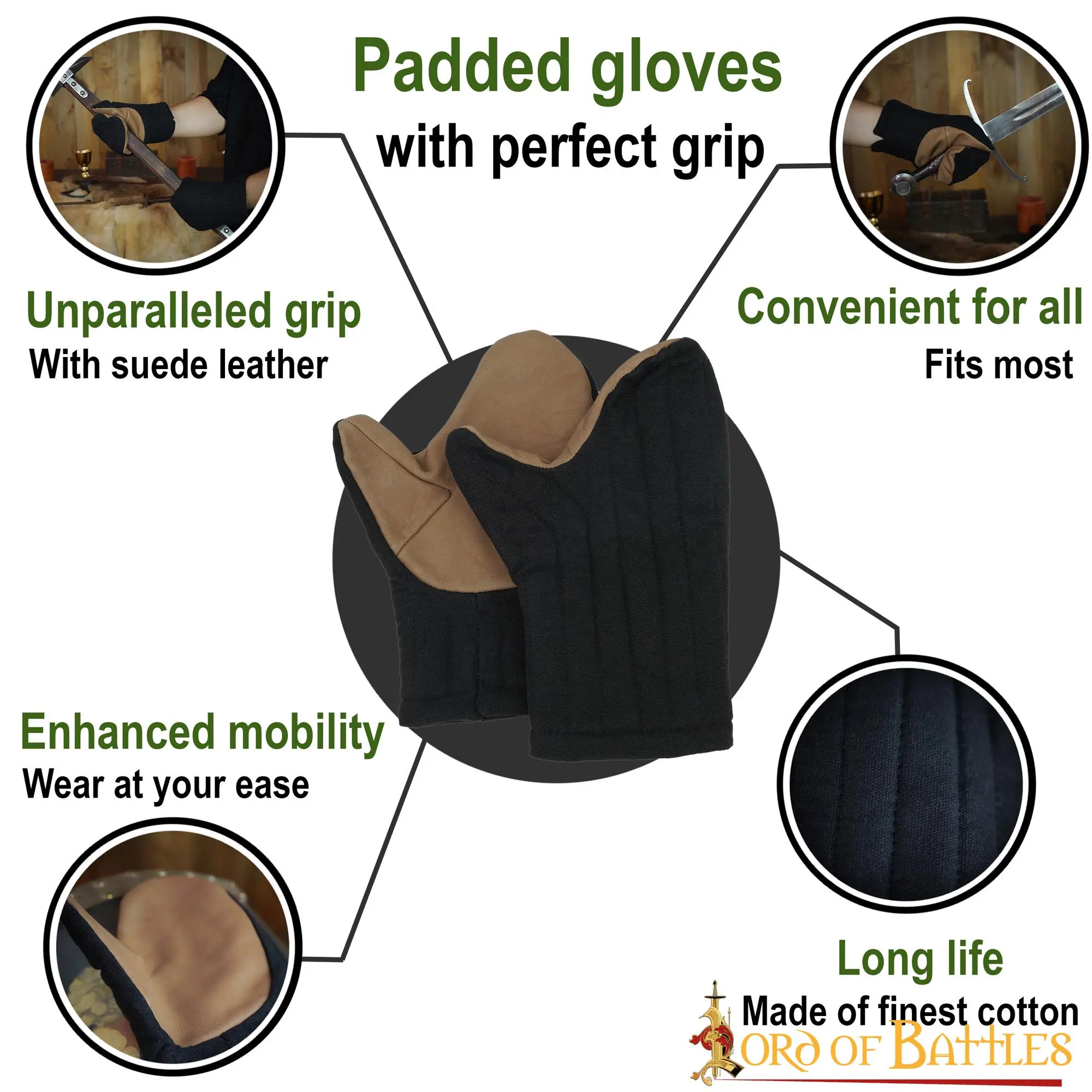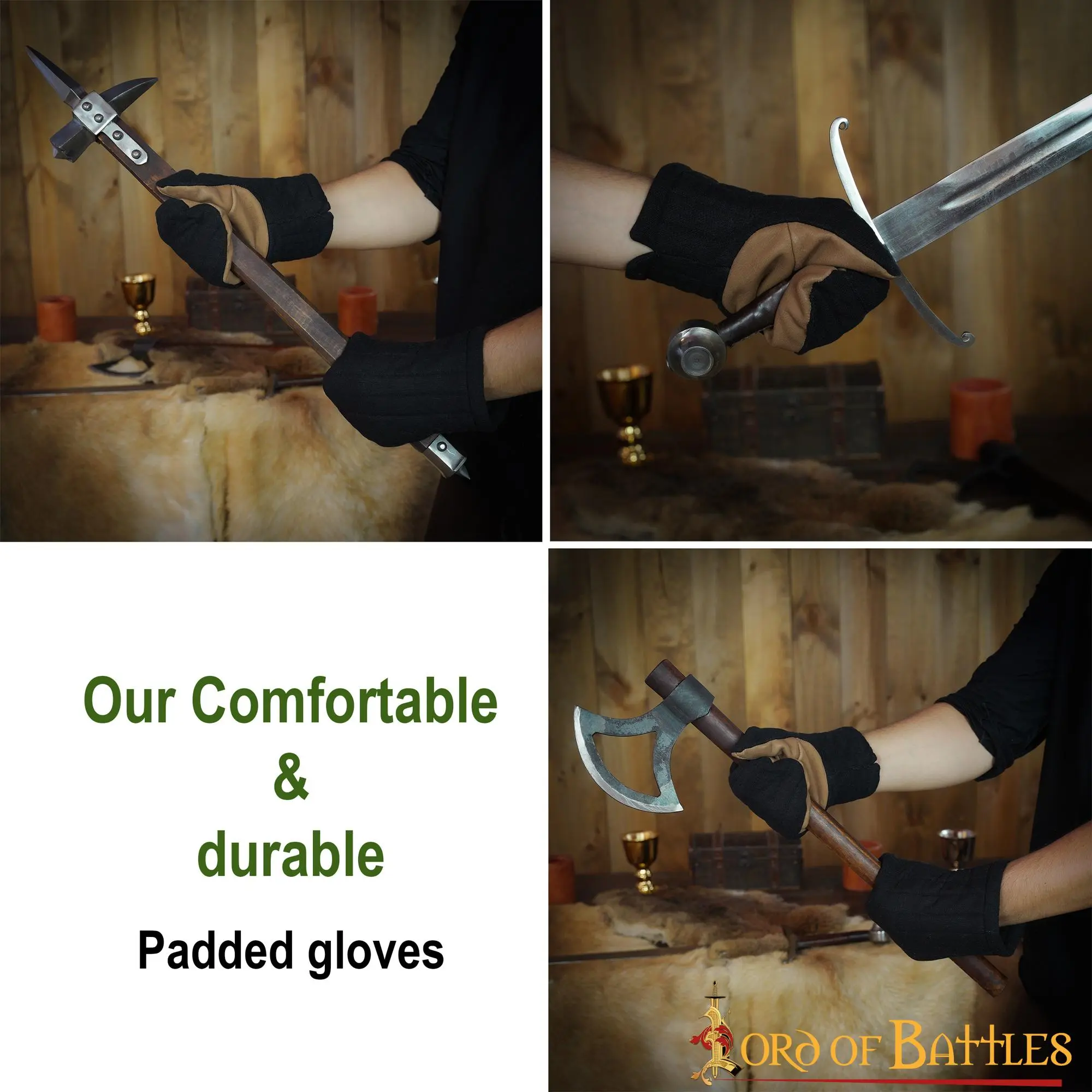 Mostly used as a form of hand protection by militiamen, infantrymen, spearmen, and other such light armoured men, in the 12th, 13th, and 14th-century battlefields, our medieval padded mitten gloves are truly historical when it comes to their origin.