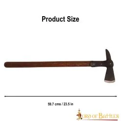 The axe handle is made from genuine and ethically sourced teak wood. The axe head is meticulously hand-forged from tough carbon steel, making it extremely tough. It is approx. 23.5 inches in length