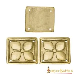 Our set of ROMAN ADORNMENTS is crafted from PURE BRASS and is approximately 5.7 cm in length and 5 cm in width. Making it easier for you to adorn your belt as an outstanding Roman accessory, we provide these decorations with a set of 10mm antique brass buttons.