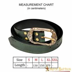 Meticulously HANDCRAFTED from GENUINE BUFF LEATHER, this belt will last longer and will make sure to hold your potions, horns, or your mighty weapons for years to come. It is available in three sizes: 130 cm, 150 cm, and 170 cm. The ANTIQUE BRASS BUCKLE is firmly riveted to support a visually appealing closure.