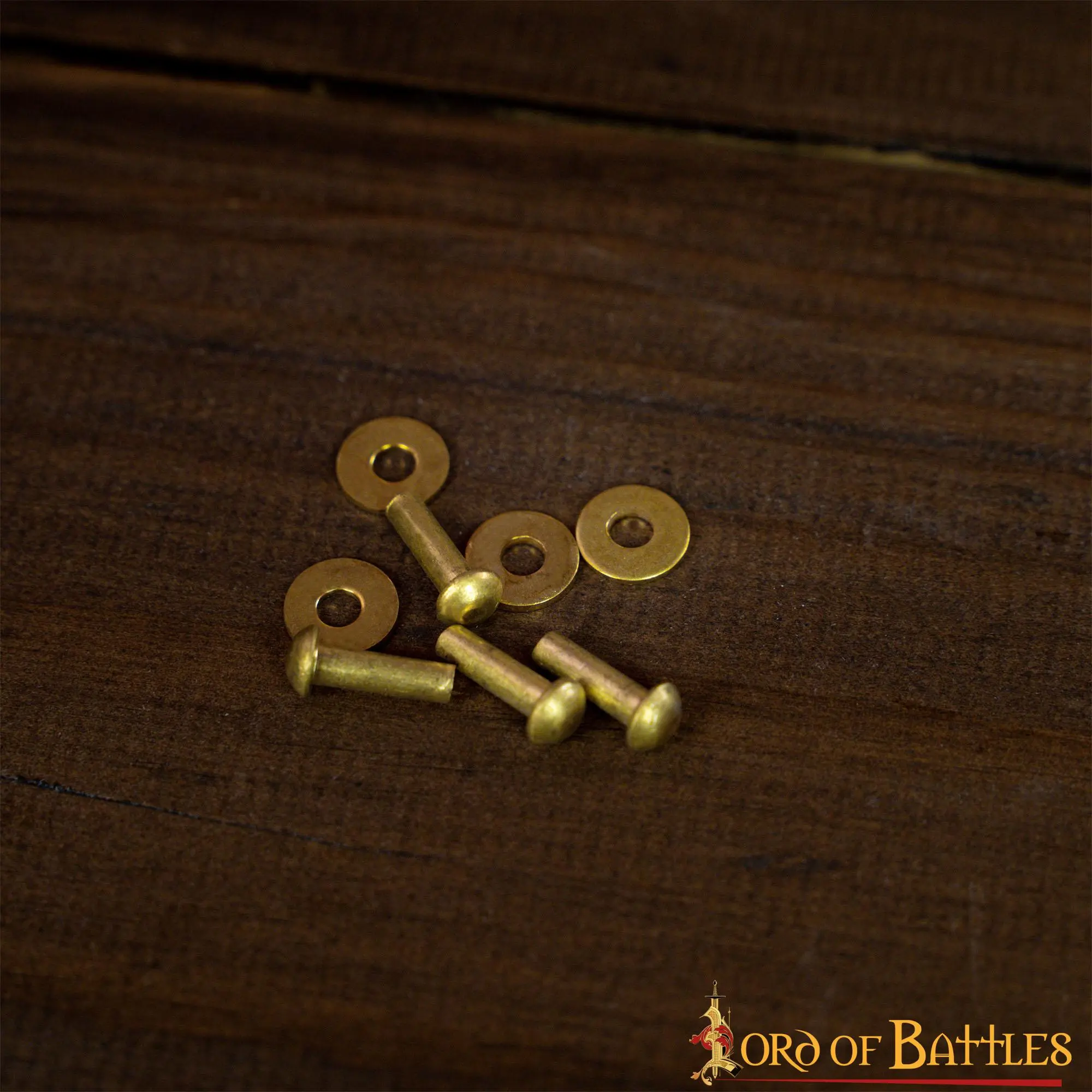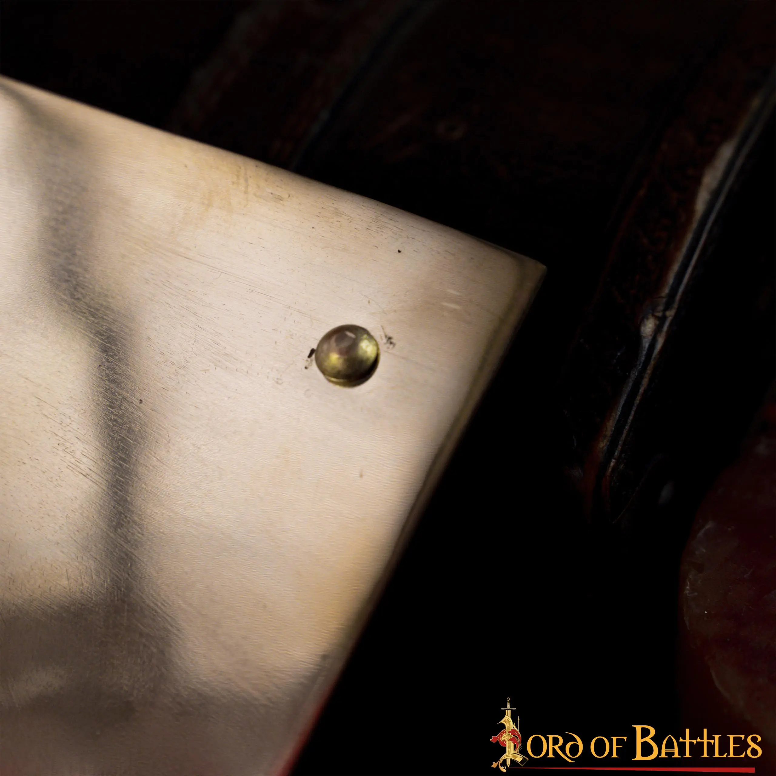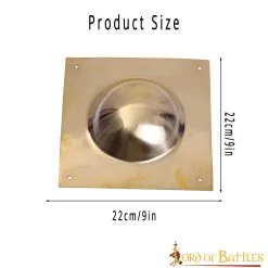 It is painstakingly crafted from PURE SOLID BRASS, making it a fully functional shield boss. Its natural lustrous texture adds to the elite Roman look. Its dimensions are approx. (9 X 9) inches. This umbo is supplied with PURE BRASS rivets and washers.