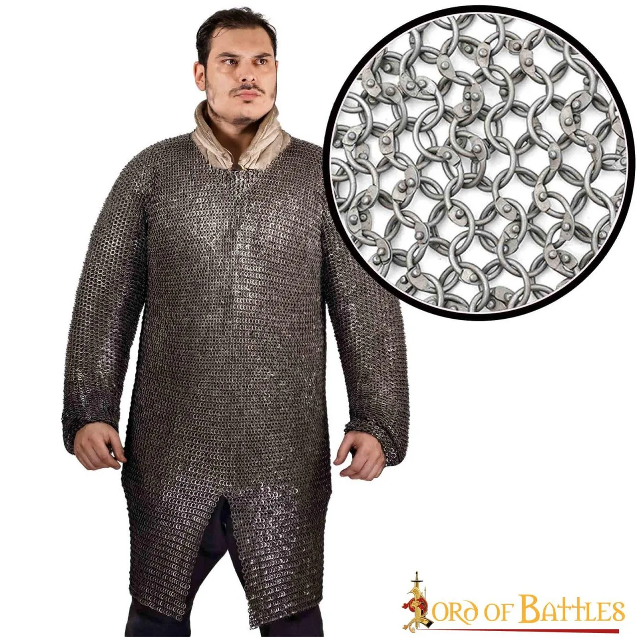 Round Ring Chainmail Hauberk Shirt, Riveted, ID 10mm, Natural