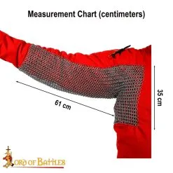 PAINSTAKINGLY handmade from dome riveted 18 gauge round rings, each with a diameter of approximately 9 mm, it is an ULTRA-LIGHT piece of chainmail armour. The light mail looks like real armour but without the heavyweight of real chainmail. That’s why it is especially popular in LARP, ren fair and in MOVIE PROP and THEATRE COSTUME.