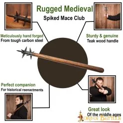 The spiked head is HANDCRAFTED from tough CARBON STEEL, making it a fully functional weapon hence, to be used with extreme caution. The handle is well crafted from STURDY TEAK WOOD. Its total length measures approx. 68.5 cm.