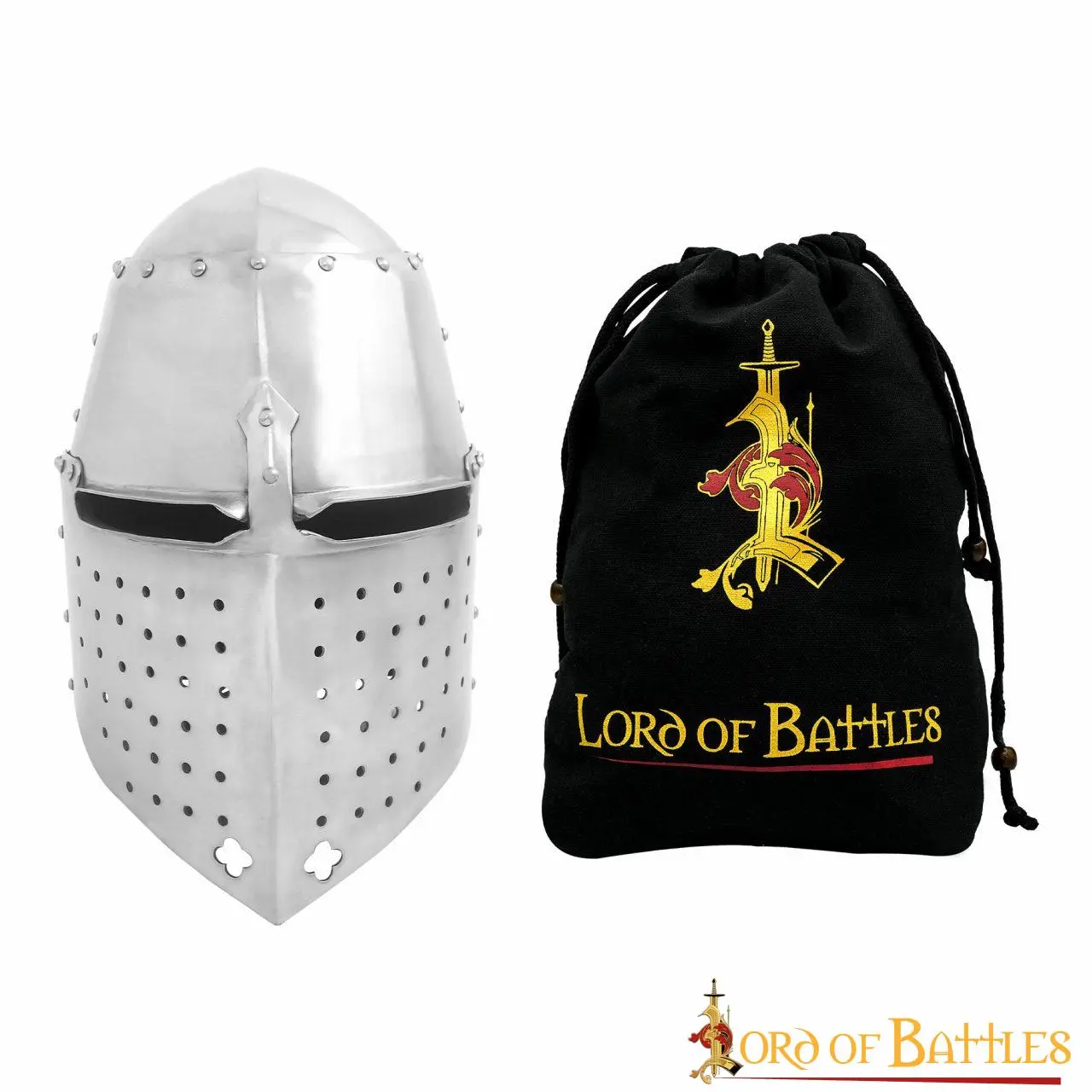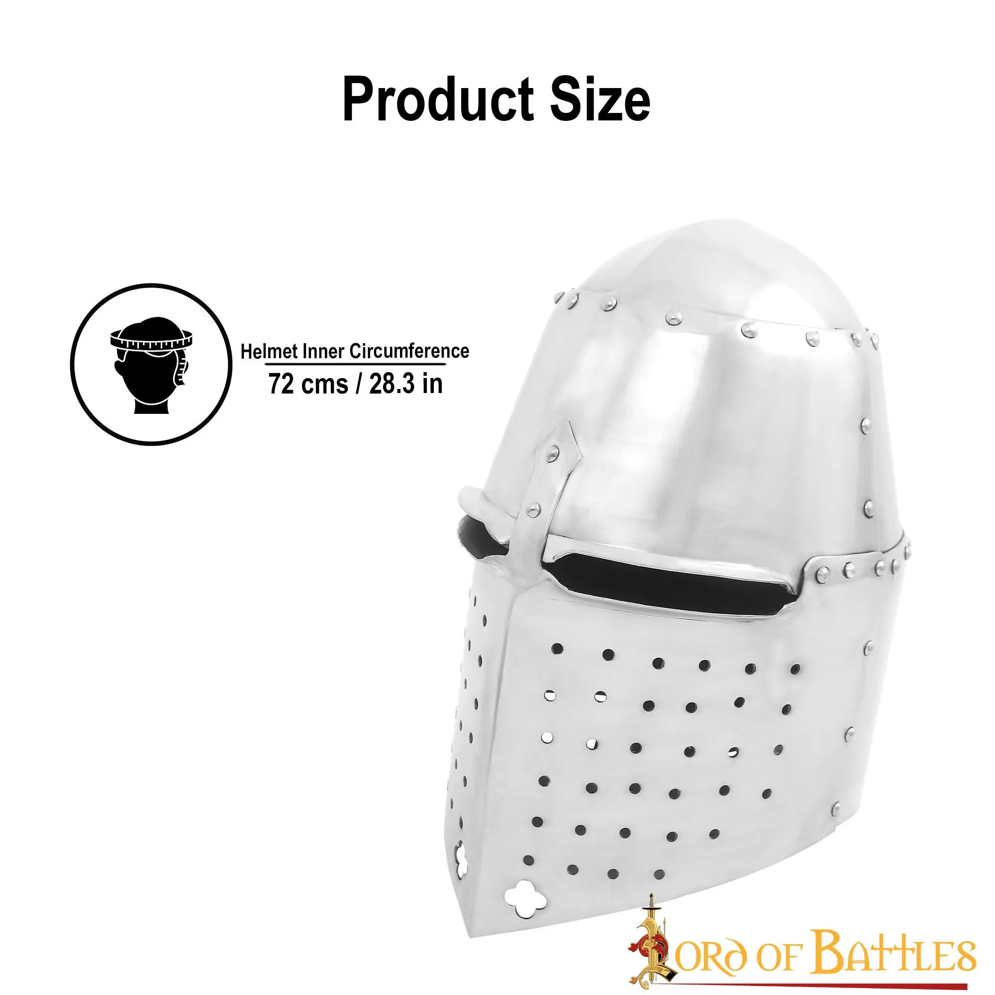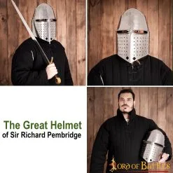 The original helm of Sir Richard Pembridge was designed to be worn over a Bascinet or Cervelliere as it was the habit for most knights of that time. But our replica has been designed to be easily worn directly on your head; thanks to its interior padding that will both protect you from the impacts of the blows targeting your helmet and help keep it stable on your head.