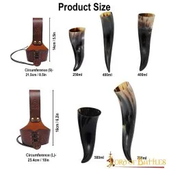 These GENUINE LEATHER horn holders with ETHICALLY SOURCED horns are available in five capacities and three colours to enhance an effortless contrast with your ensemble. The small holder with an 8.5″ circumference is available with 250ml and 400ml horns, while its larger counterpart, 10″ in circumference, is available with 500ml and 700ml horns. THE RICH GREEN HOLDER IS AVAILABLE WITH A 400ML HORN.