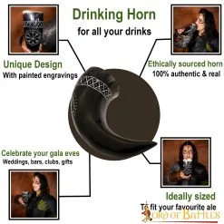 Quench your thirst or simply just carry it around, our authentic drinking horn with ornately engraved Vegvisir and geometric designs will be the best fit for your joyous Viking get-togethers. Since we love to care for our natural products as much as you do, we supply this horn with high quality, sturdy, cotton canvas bag that will keep it safe and protected for years to come.