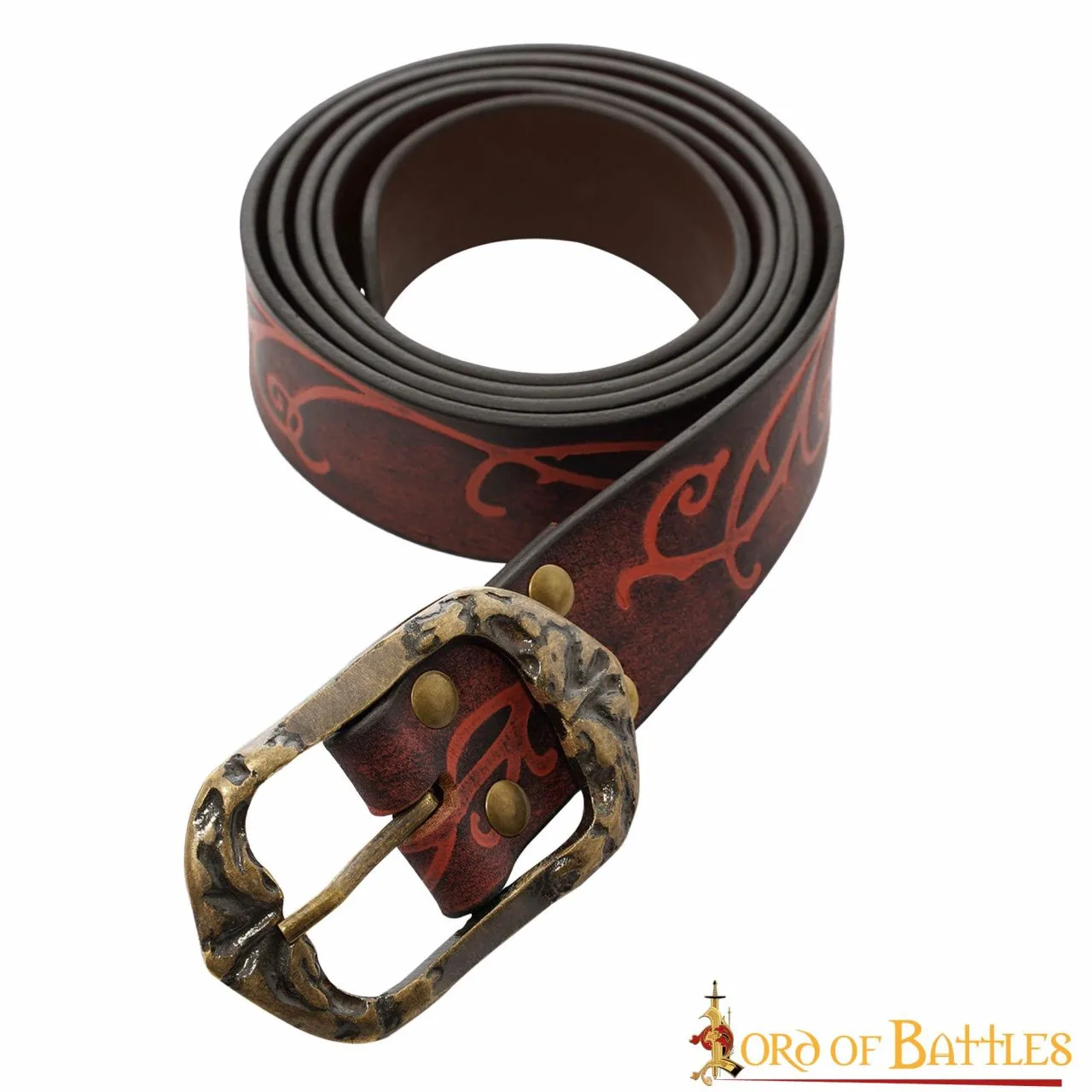 Have you always wanted to be a ranger at your next medieval fair, LARP, or cosplay event? This leather belt, uniquely embossed with ornate motifs, will stay fastened around your most favoured ranger outfit in your upcoming odysseys and events!