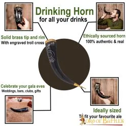 Being on a quest, you cannot ignore the dangers of trolls and the arrows of forest elves. For that, carry our Viking drinking horn with an engraved Troll Cross design that instantly scares these predators away. It comes with a sturdy canvas cotton bag to keep it safe and protected, enhancing longevity.
