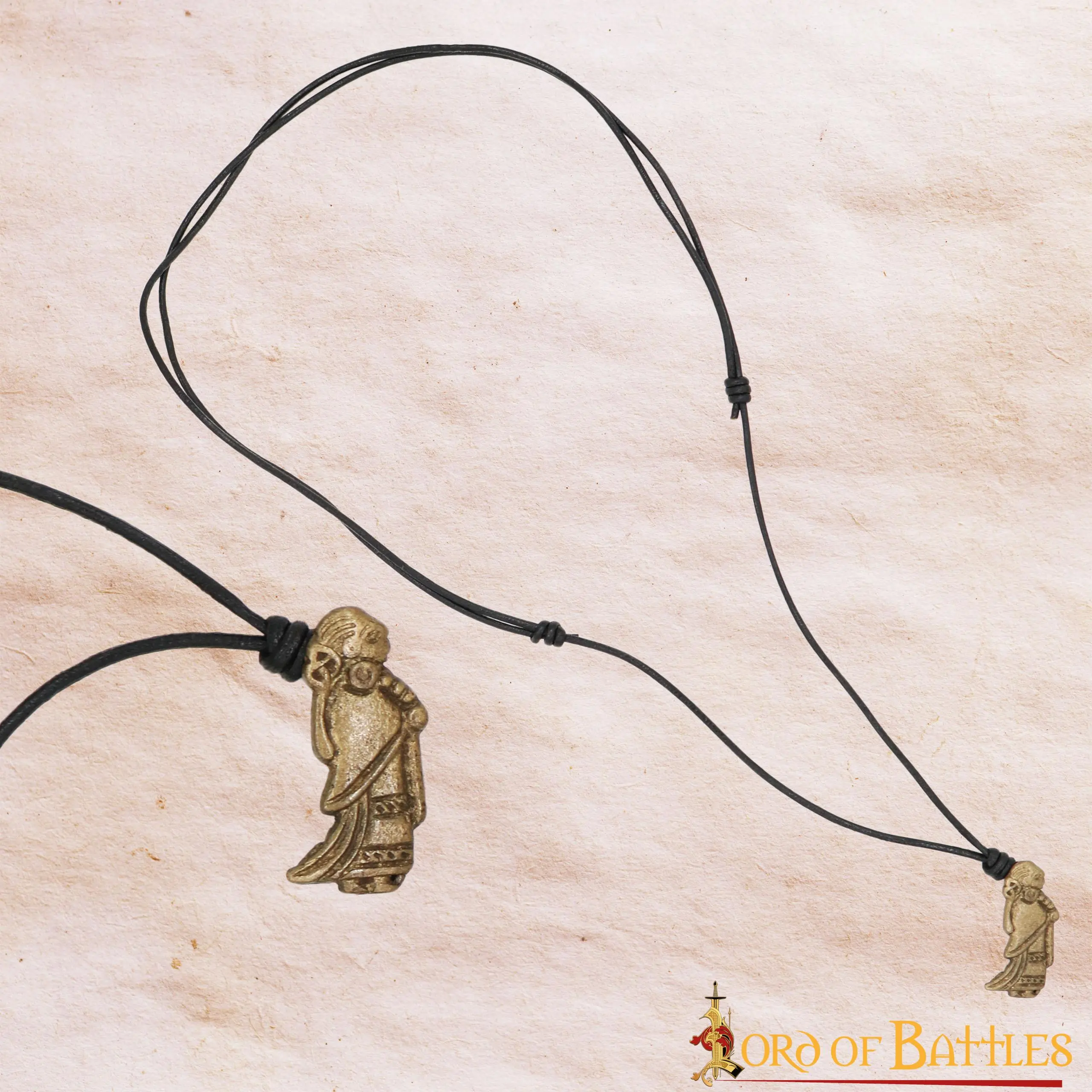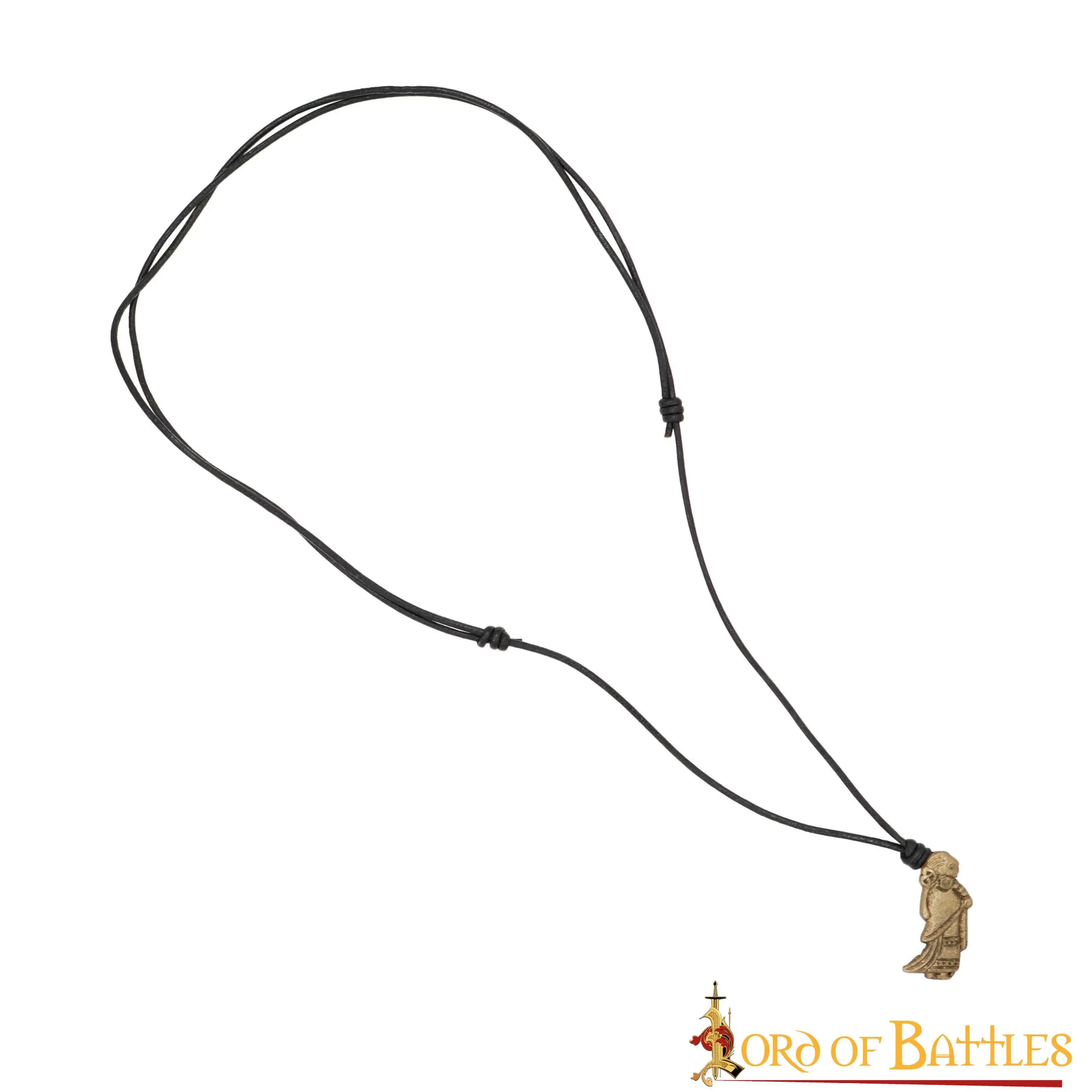 WELL-DESIGNED from SOLID ANTIQUE BRASS, this pendant will last event after event, for years to come. A handcrafted GENUINE LEATHER CORD makes a robust attachment. The length of the pendant is approx. 3.5 cm.