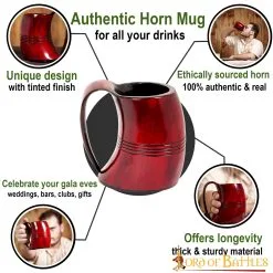 What a day has it been; a victorious raid and now, an honorary feast. And for that, you can’t take your regular horn; you need to carry this rich, crimson red horn tankard. You are not just holding any drinking horn; you are holding a 1000-year-old legacy! We care for your horn products as much as you do, and just for that, it comes in a stout cotton canvas bag.
