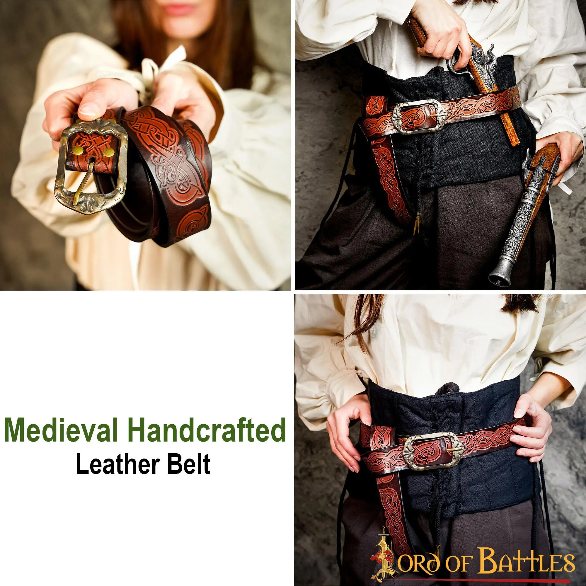 Looking for a belt that can fit your modern-day outfit and your LARP or Cosplay costumes at the same time? This well-designed belt is exactly the leathercraft you should get! And effortlessly invigorating its look, is its buckle that makes it truly irresistible.