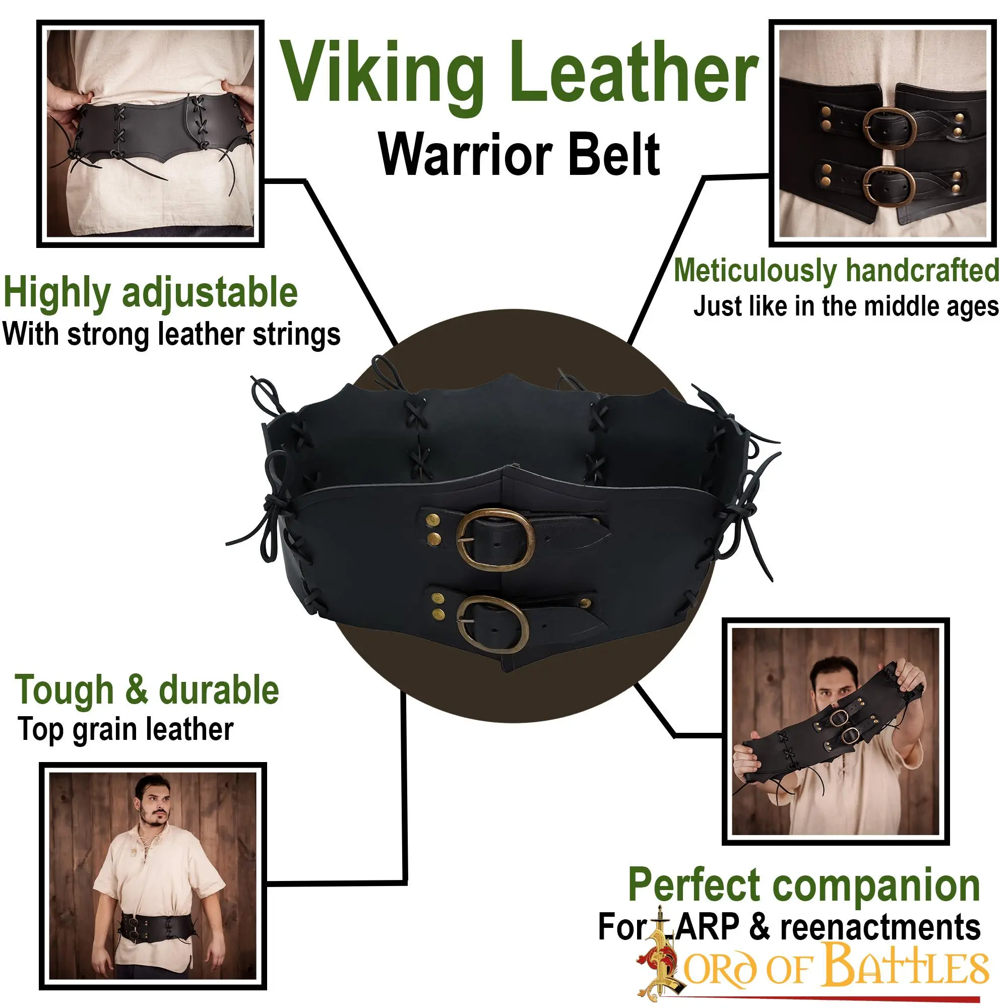 Fastened around your waist, this warrior leather belt makes you look like a true quester on his way to a new adventure. Because it is not just any belt, it is a warrior belt, crafted from the very best leather available by our skilled artisans.