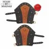 It is HANDCRAFTED from genuine buff leather that makes it extremely durable. It fastens using two simple belt straps with buckles made from PURE ANTIQUED BRASS. Its total length is approx. 111.8 cm; for even more adjustability, one of the leather sheets can be untied from the main belt.