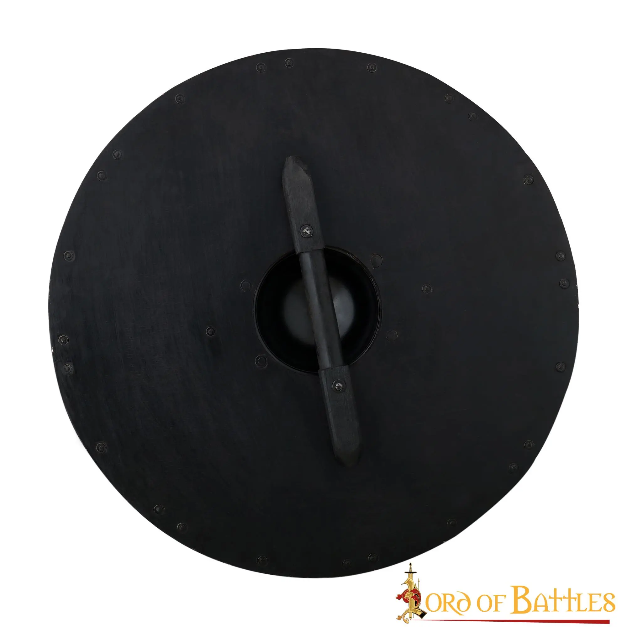 This shield, of approx. 24 inches diameter is meticulously handmade from GENUINE WOOD. A sturdy metal handle makes a firm grip to clutch this shield. The umbo and fittings are made from tough MILD STEEL. This shield makes a fully-functional armour and a perfect fit for reenactments as well as décor.