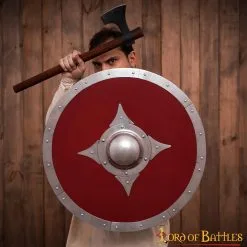 A fierce Viking warrior of your clan, this round wooden shield will make sure to defend you from those harsh axe blows or even support a forceful thrusting action from your side.