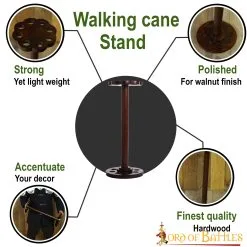 It is meticulously handcrafted from the finest quality HARDWOOD, making it robust and hard-wearing. It is approximately 23 inches (58.4 cm) in length; the diameter of the upper disc is 23 inches (58.4 cm) and, that of the lower disc is approx. 9.44 inches (24 cm). The constituent parts of this cane holder are detachable for easy assembly.